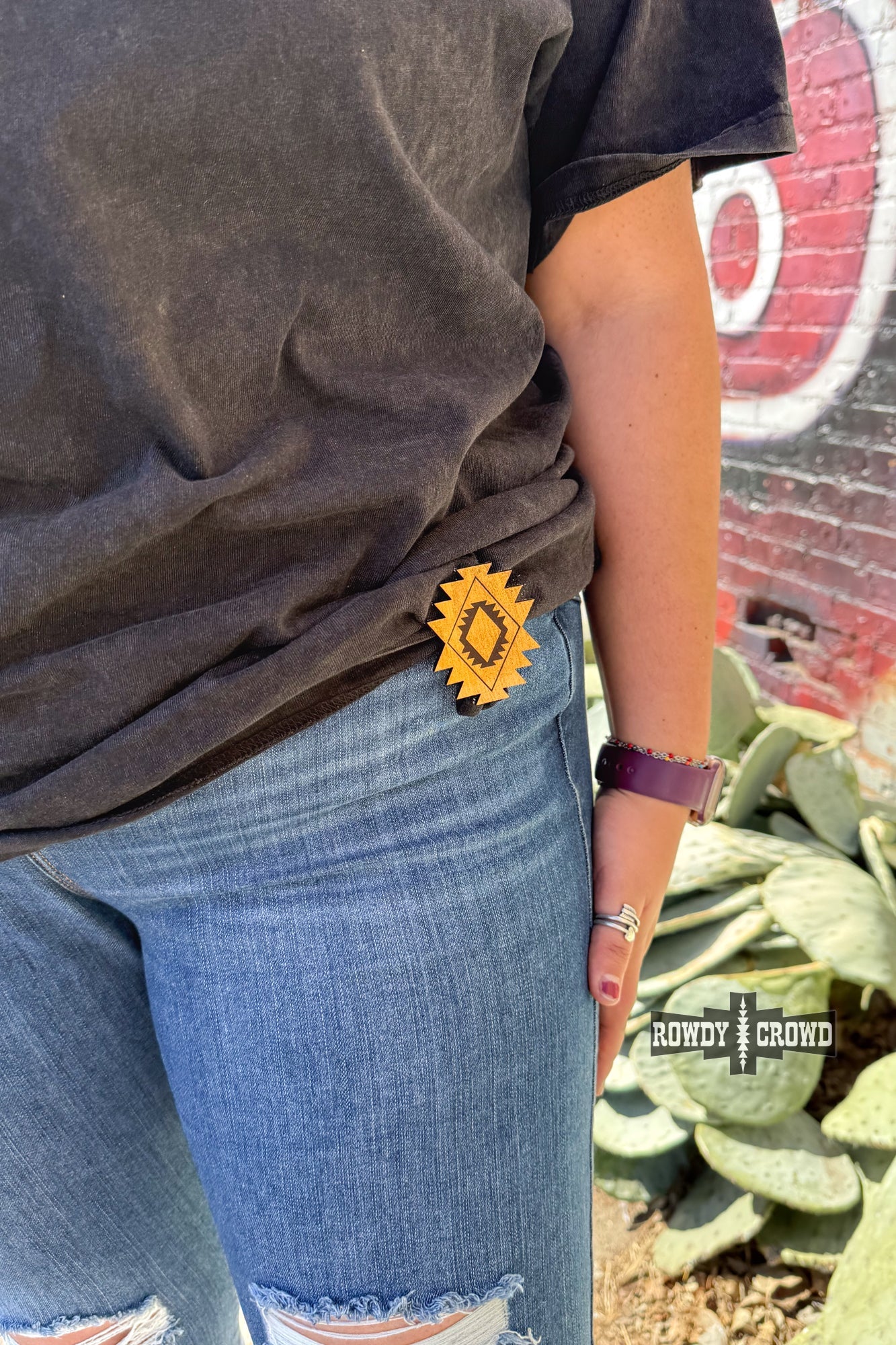 Bring the bold with our Aztec Sky scarf slide! it's the perfect way to secure your wild rag with some serious Southwestern flair.
