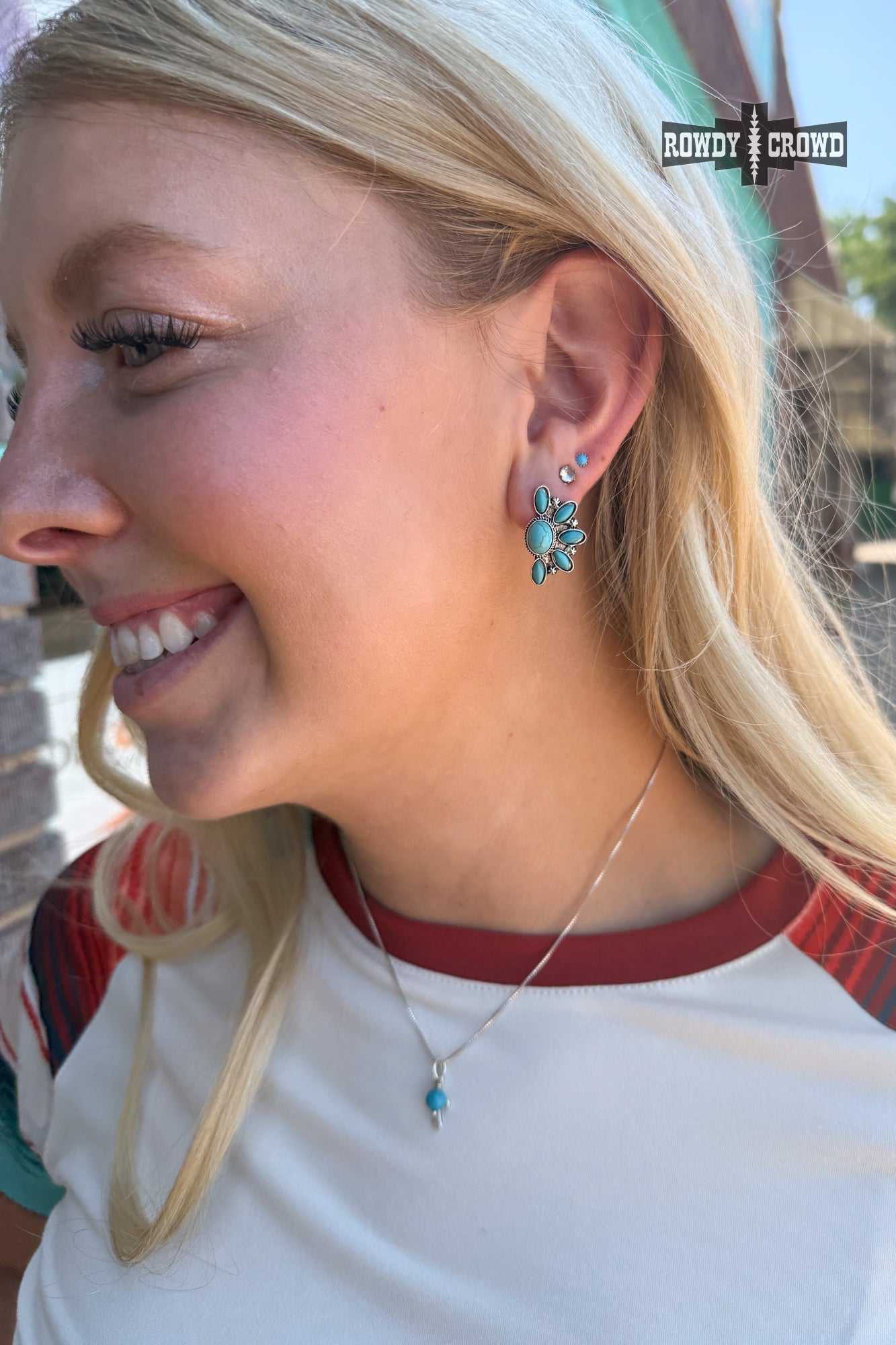 Bloom in style in the Concho Cluster Studs! Silver petals cradle vibrant turquoise stones, bringing a pop of color to any look. Perfect for adding a touch of charm to your everyday look.