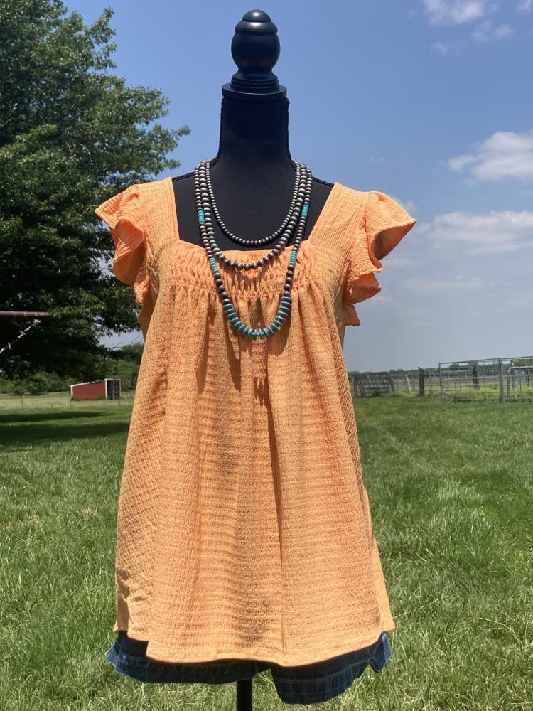 Introducing our Coral Ruffled Baby Doll Top, perfect for a fun and bright summer look! With its playful ruffles and vibrant coral color, this top is sure to add a touch of joy to your wardrobe. Embrace the season in style with this must-have piece.