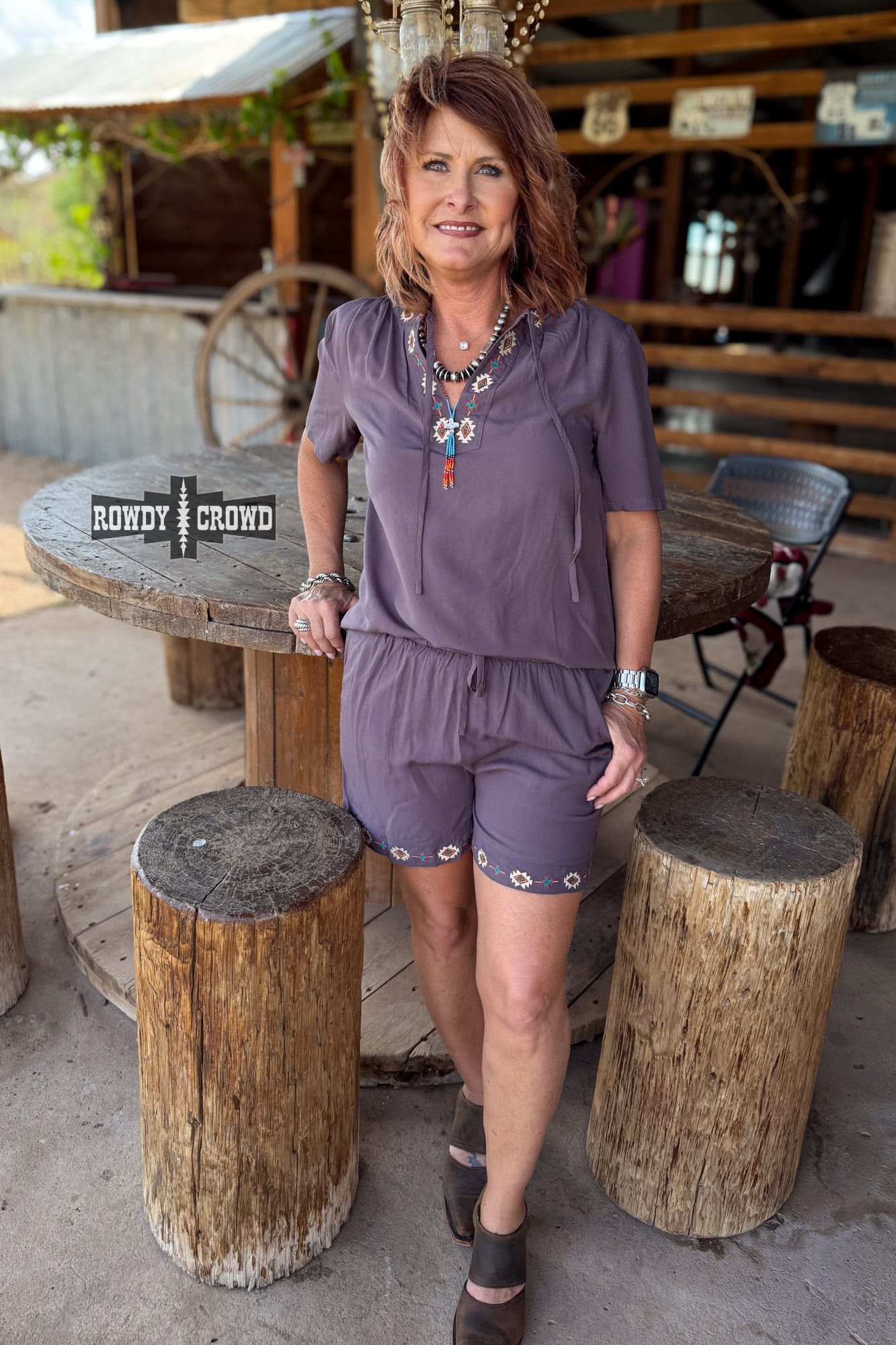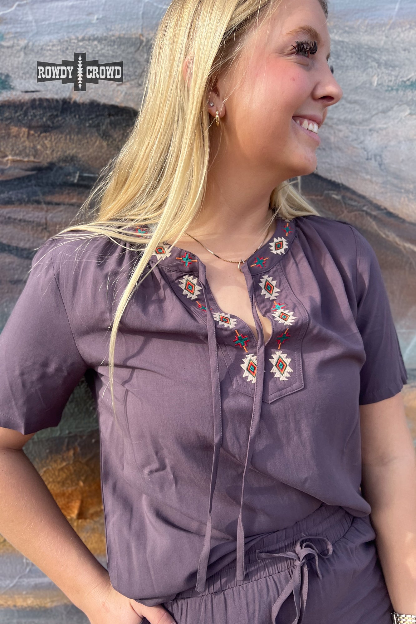 Introducing the Westbound Lounge Set, a comfortable and bold set sure to make a statement. Featuring an eye-catching neckline tie and vibrant Aztec icons for a southwest vibe, this set is perfect for those who want to stand out or just relax!