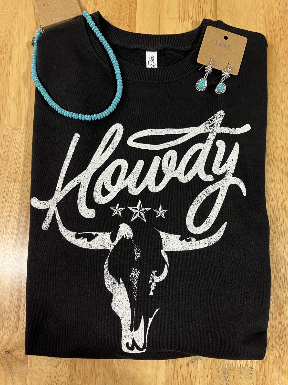 Introducing the Howdy Pullover - a perfect blend of comfort and style. With its comfortable fit and stylish design, this versatile pullover is a must-have addition to your wardrobe. Whether you're going for a casual look or embracing your western side, the Howdy Pullover is the perfect choice. Add it to your cart today and experience the ultimate in comfort and style.