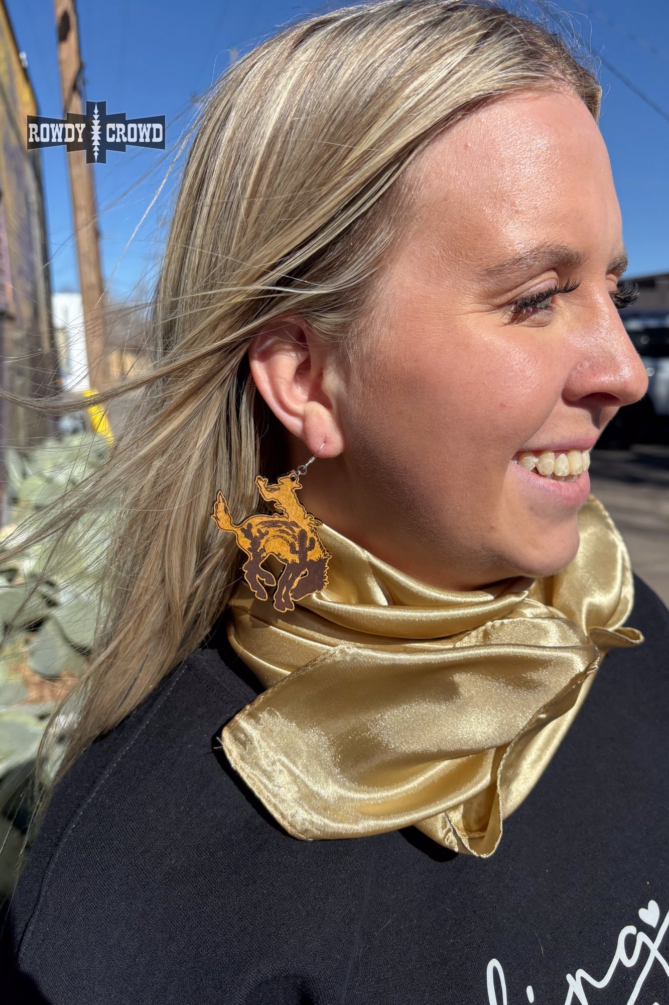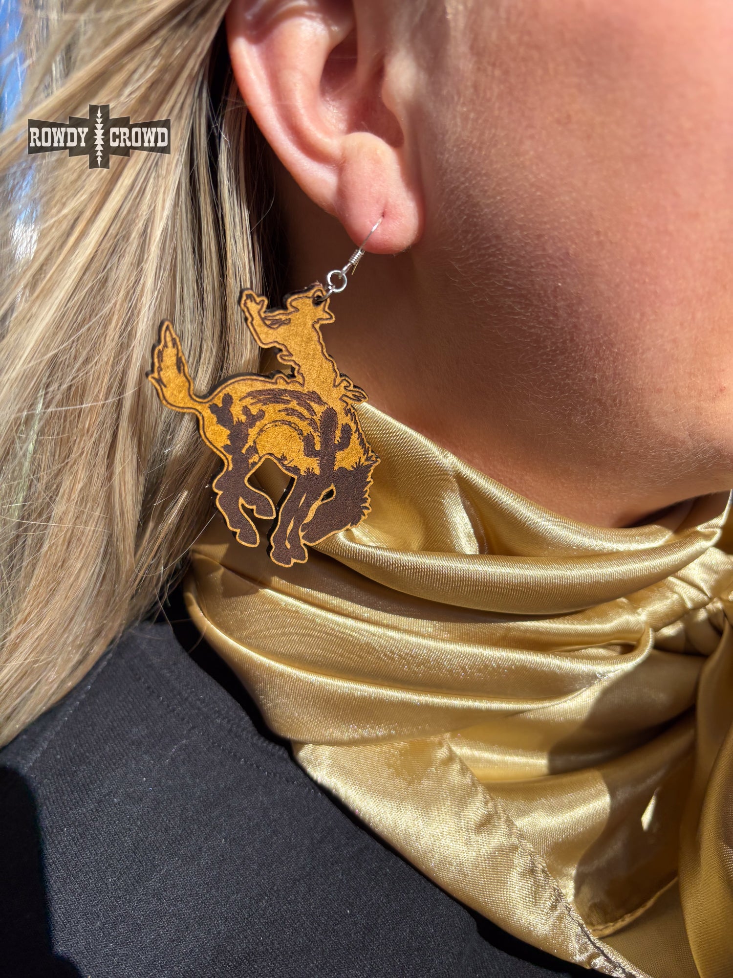 Our Bowie Bronc design now comes in earrings! Meet our Shotgun Rider, made of 100% leather, these are super lightweight, fun and perfect to wear out and about. With its desert scene pattern and bronc shape, these are sure to steal the show or rodeo!
