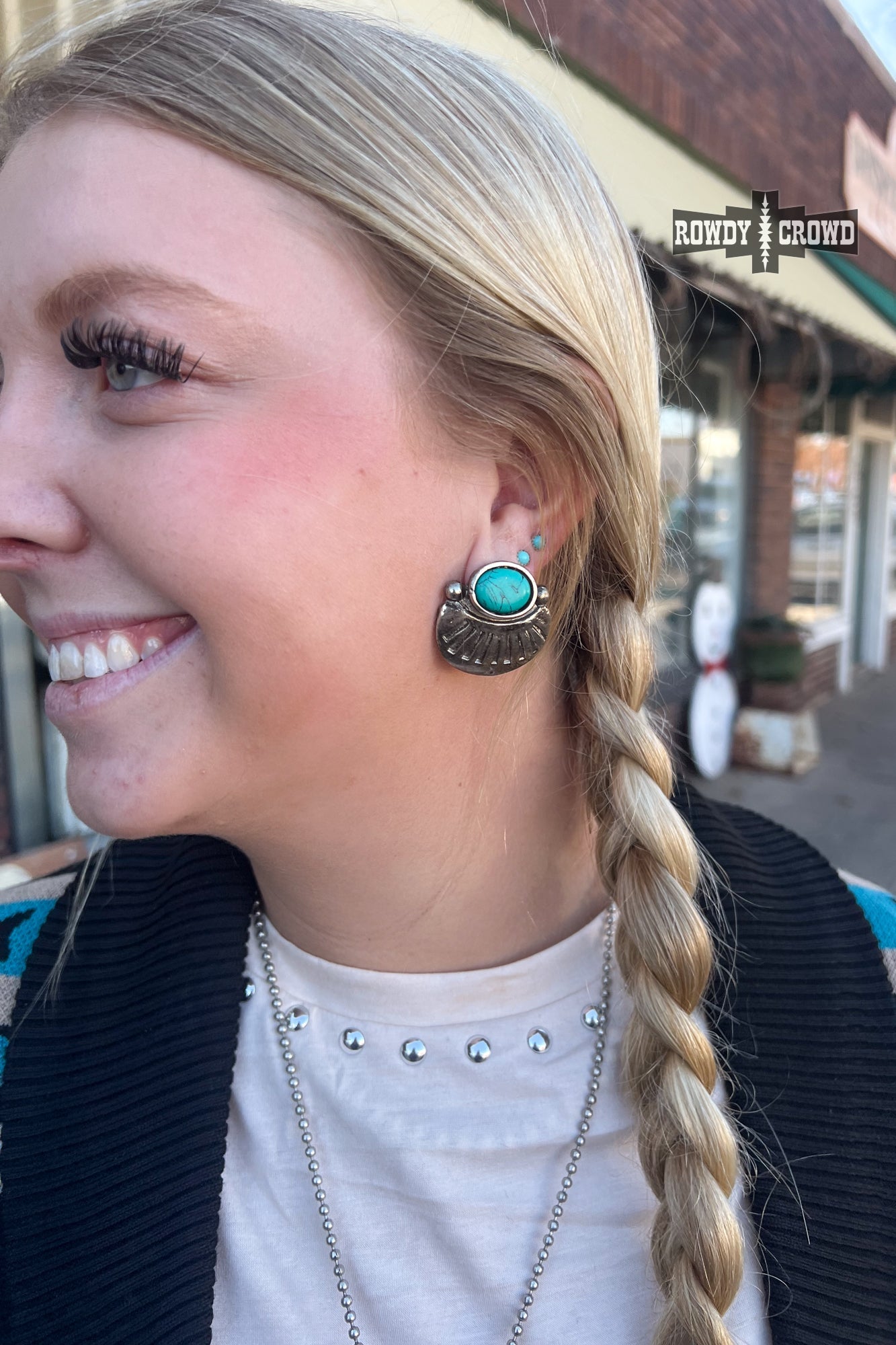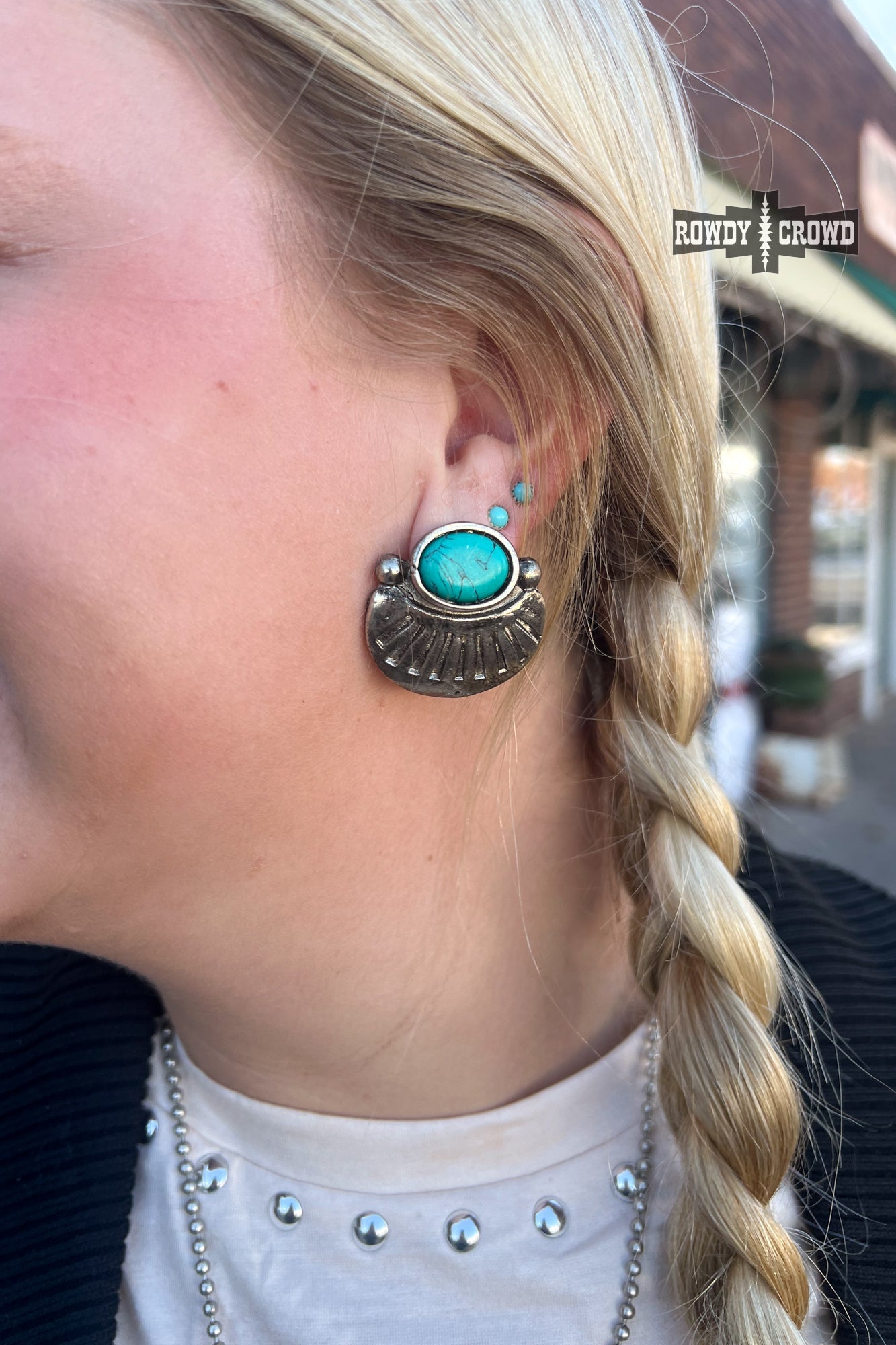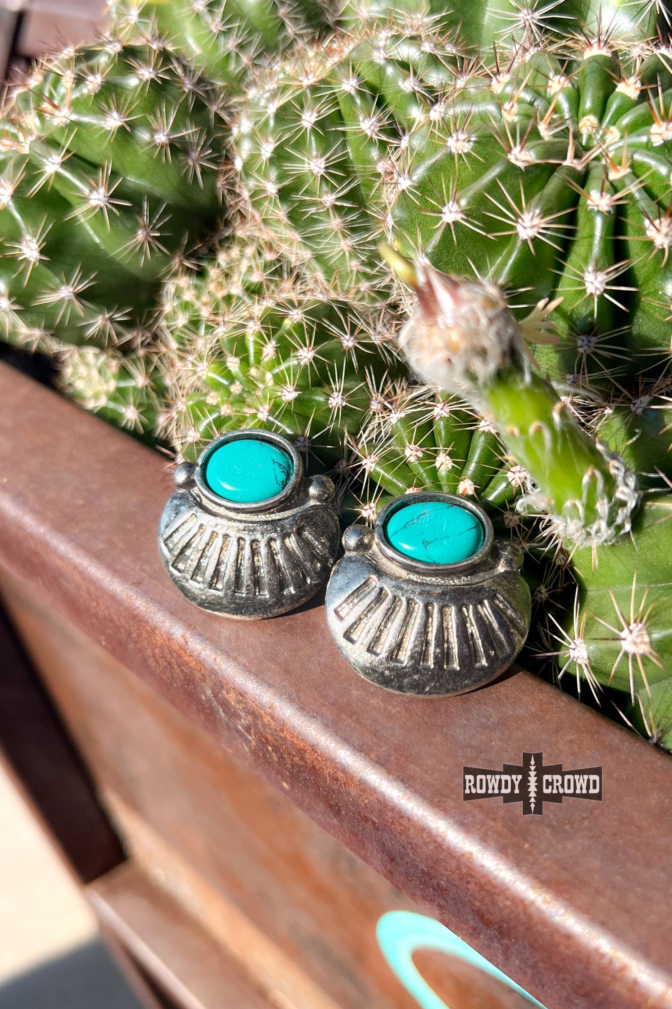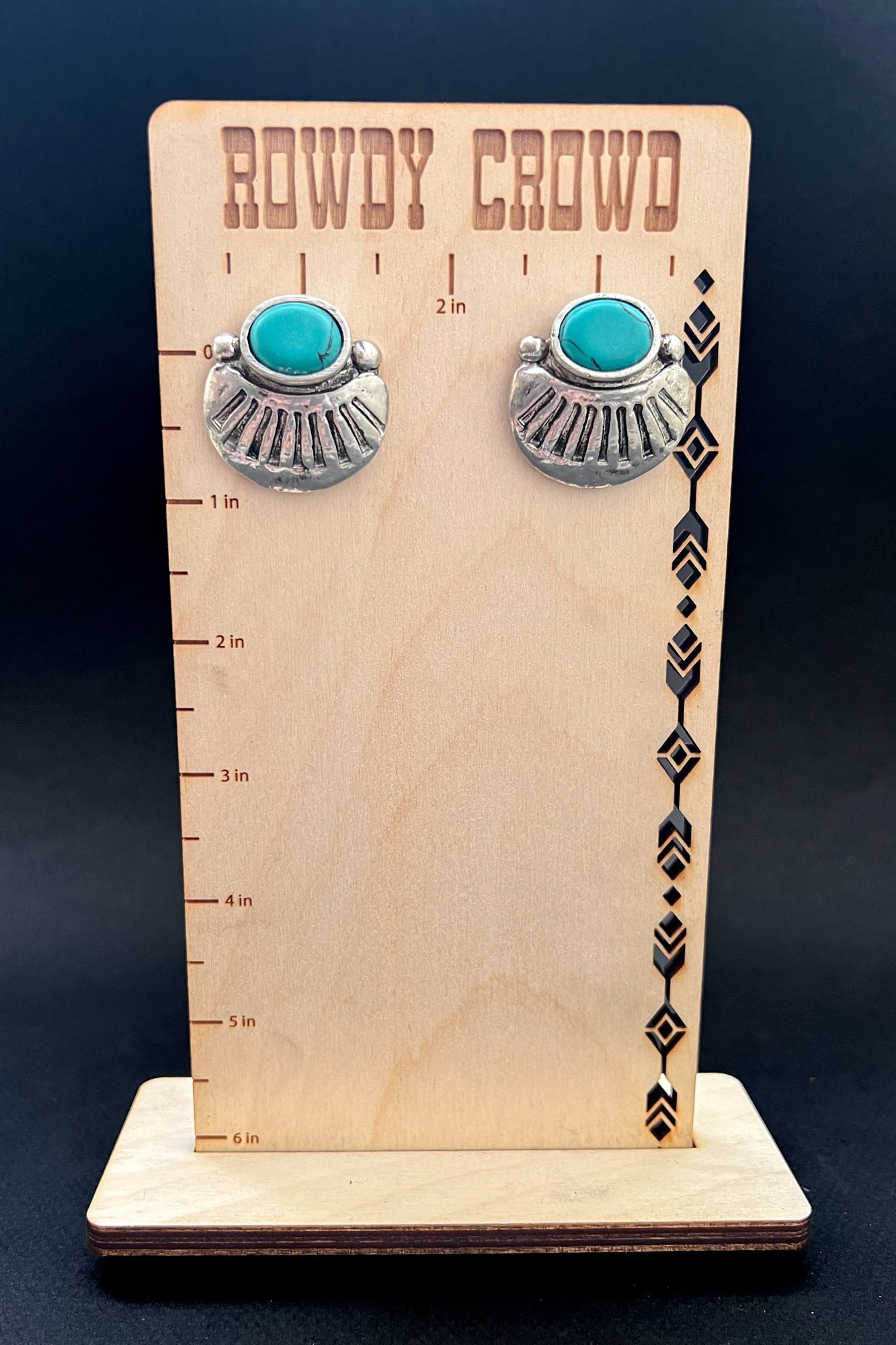Experience the wild west with Sioux Falls Studs. These bold and daring earrings are southwest inspired and adorned with turquoise accents for a touch of adventure. Take risks in style and add a touch of the unexpected to any outfit.